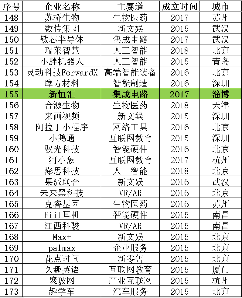 2020年9月,“2020中國潛在獨角獸企業(yè)研究報告發(fā)布會”在江西南昌舉辦。會上長城戰(zhàn)略咨詢發(fā)布了中國首份《2020中國潛在獨角獸企業(yè)研究報告》,報告包括了2019年中國潛在獨角獸、2020年新晉潛在獨角獸兩份榜單。潛在獨角獸必須成立時間在十年之內(nèi),并且尚未上市的中國境內(nèi)企業(yè)。據(jù)了解,今年共有296家企業(yè)入選該榜單。其中,新恒匯作為集成電路賽道的代表企業(yè)列入該榜單。